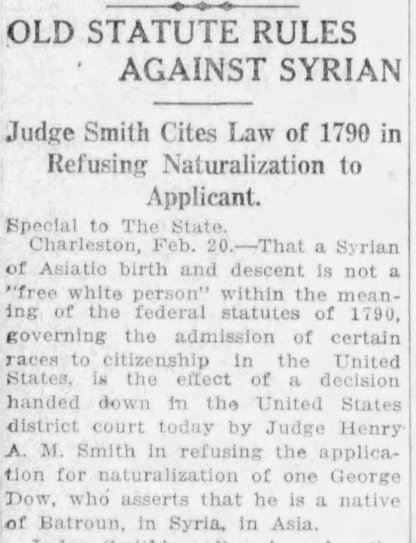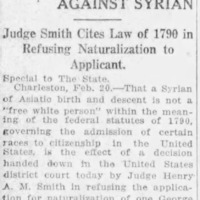 - https://www.newspapers.com/article/the-state-old-statue-rules-agains-syrian/162045831/